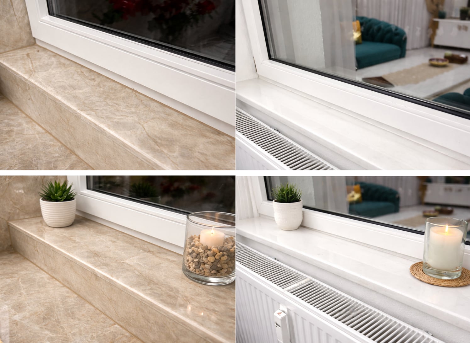 Auch bei Fensterbänken sind runde Formen oder Sonderformen möglich, schräge Schnitte können ebenfalls berücksichtigt werden.
